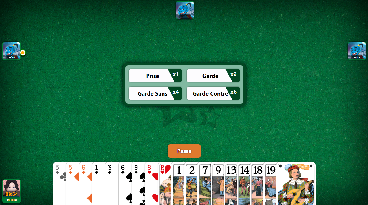 Après avoir calculé la valeur (fictive) de votre jeu en fonction des Bouts, Atouts, Honneurs et distribution, vous pouvez vous référer à ce guide pour vos premières parties amicales: